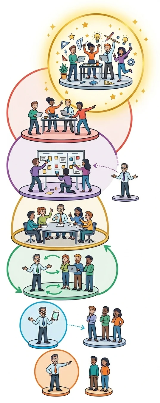 Si trabajas en RRHH, gestionas equipos o diseñas planes de formación, sabes que la delegación es el gran talón de Aquiles de las organizaciones modernas. Pero, ¿y si te dijera que el problema no es la falta de confianza, sino que estamos usando una herramienta binaria (o delego o no delego) para un mundo que está lleno de grises? Aquí es donde entra el Management 3.0 y sus 7 niveles de delegación.